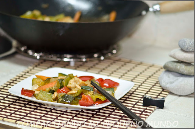 qué rico !!! cada vez me gusta más la comida asiática, pero no me atrevo a cocinarla mucho, poco a poco. El pollo con almendras me encanta, es d elo que suelo comer en los restaurantes asiáticos, y el tuyo es que es clavado al que ponen, supongo que de sabor de lujo!!!